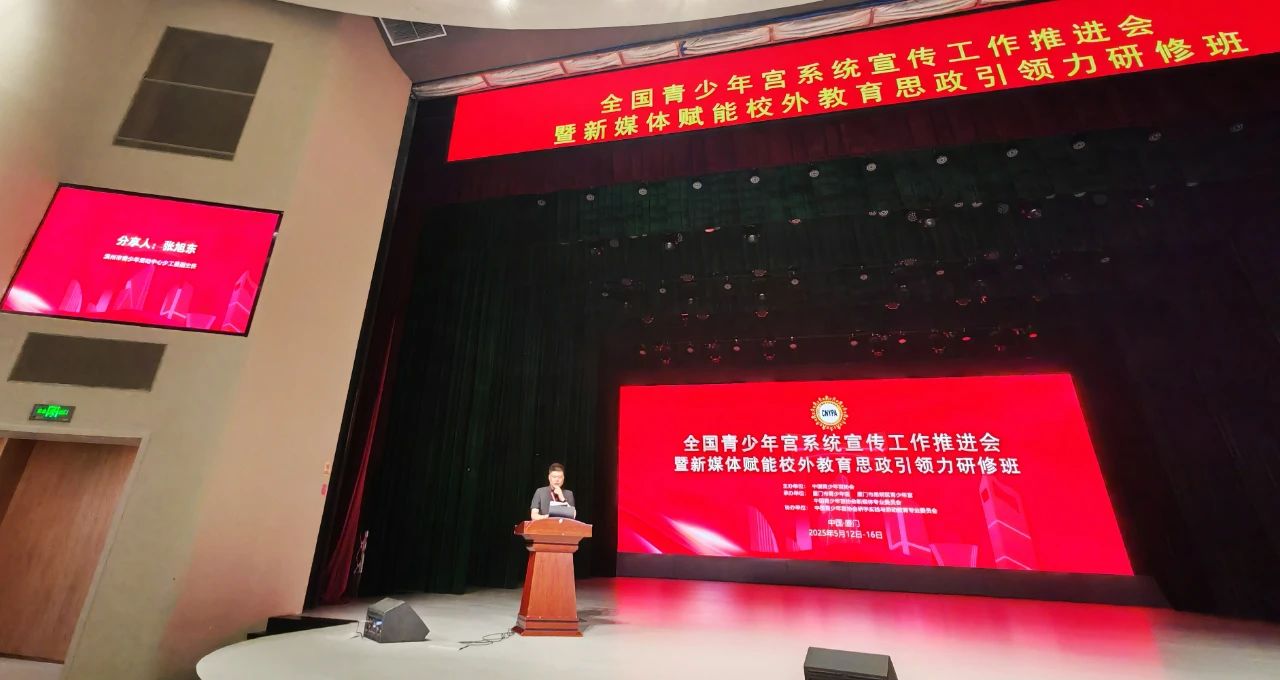 5月12日至16日,全国青少年宫系统宣传工作推进会暨新媒体赋能校外教育思政引领力研修班在福建厦门举办。培训班深入学习贯彻习近平总书记在全国教育大会上的重要讲话精神,坚持不懈用习近平新时代中国特色社会主义思想铸魂育人实施新时代立德树人工程,通过专题讲座、现场教学、专题交流与案例分享等多种形式,进一步打造青少年宫等校外教育阵地实践育人的思政引领力,推动青少年宫事业高质量发展。来自全国各地青少年宫、青少年活动中心负责人和新媒体宣传部门负责人参加本次培训。在会上,滨州市青少年活动中心作典型交流发言。
