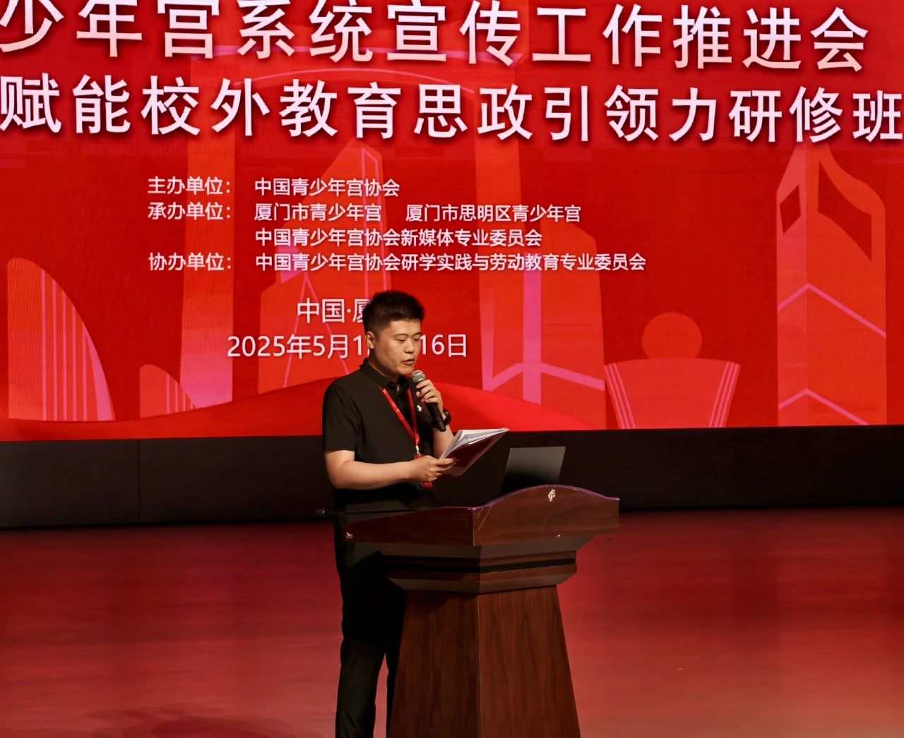 5月12日至16日,全国青少年宫系统宣传工作推进会暨新媒体赋能校外教育思政引领力研修班在福建厦门举办。培训班深入学习贯彻习近平总书记在全国教育大会上的重要讲话精神,坚持不懈用习近平新时代中国特色社会主义思想铸魂育人实施新时代立德树人工程,通过专题讲座、现场教学、专题交流与案例分享等多种形式,进一步打造青少年宫等校外教育阵地实践育人的思政引领力,推动青少年宫事业高质量发展。来自全国各地青少年宫、青少年活动中心负责人和新媒体宣传部门负责人参加本次培训。在会上,滨州市青少年活动中心作典型交流发言。